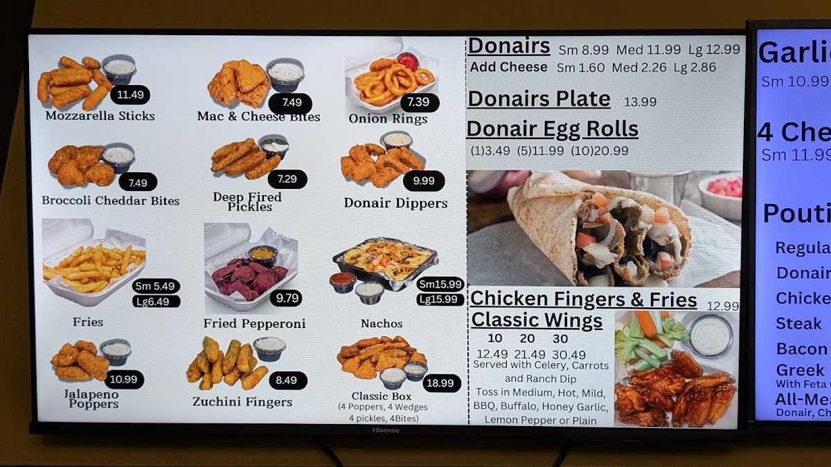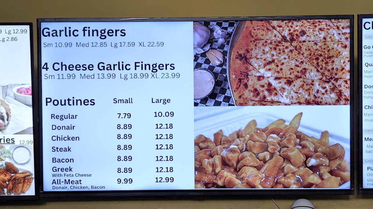 The appetizers are satisfying, featuring Nachos, Garlic Bread, and Mozzarella Sticks (12 pcs). If you're a fan of donairs, the menu offers multiple options, including Small Donair and Large Donair, with the option to add cheese. The Classic Wings come in portions of 10, 20, or 30 wings, perfect for group dining. For something different, try the Classic Poutines, such as the Small Regular Poutine or Large Signature Poutine.