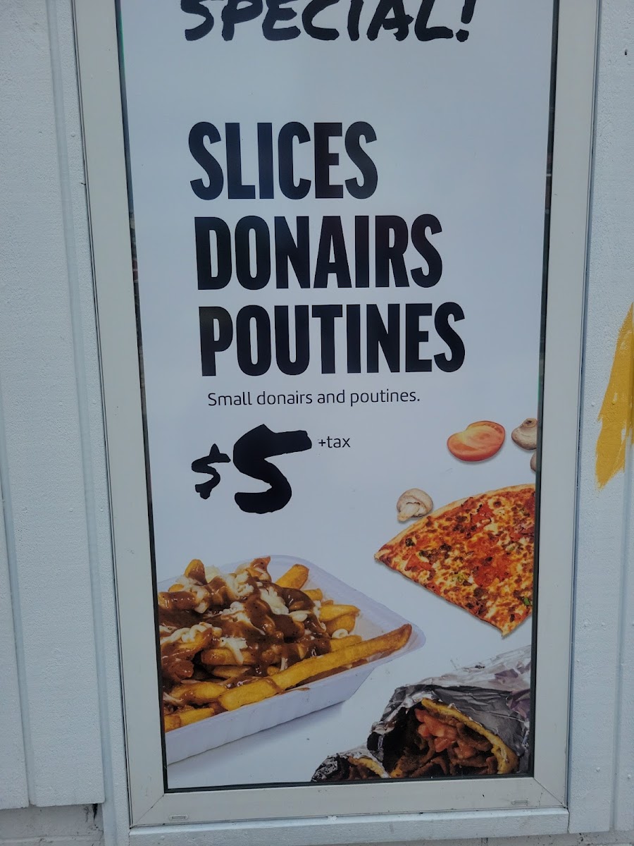 Donair sauce, onions, tomatoes Sm $13.99 | Med $18.29 | Lg $22.69 | XL $27.49